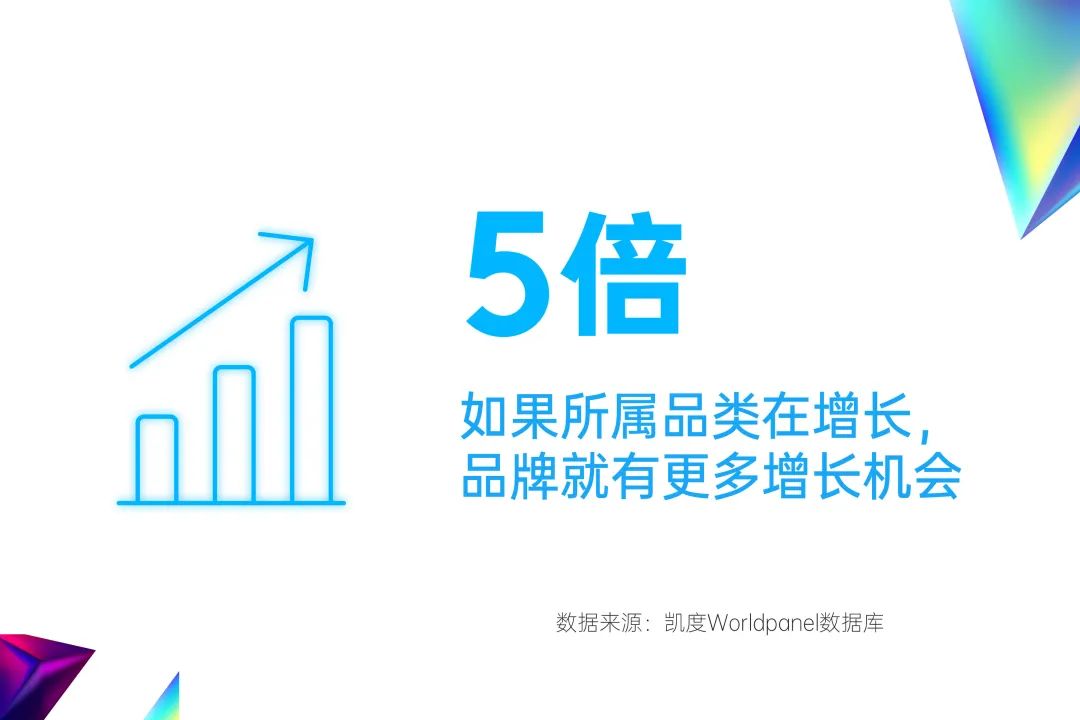 此外,还有一些其他因素也在压缩市场。例如,年轻人结婚和生育的年龄推迟,且更多人生活在更独立的小家。生育率下降意味着消费能力尚未完全释放的老年购物者将在市场中占据更大份额。根据凯度Worldpanel的数据,如果品牌所属的品类处于增长状态,品牌实现增长的可能性会高出5倍。面对人口增长放缓的挑战,品牌需要立即采取行动,扭转颓势。